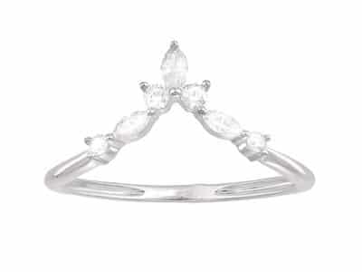 Bague or blanc diadème, diamants ronds et navettes 0,22ct